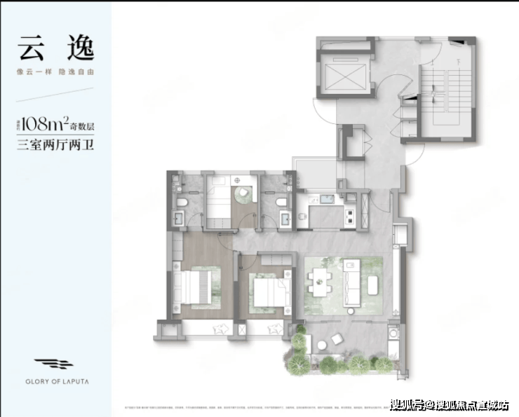 户型点评:4房2卫的房屋套型;偶数层南向超大L型空中庭院;四开间、三卧室朝南设计;偶数层北面有个北庭院;