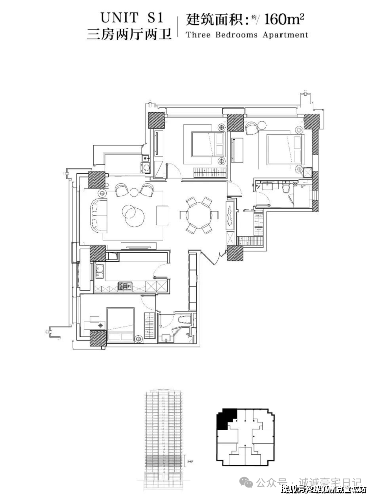 160㎡3房东北朝向或西北朝向(一梯两户)⬇⬇