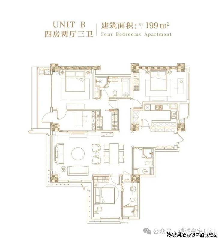 199㎡~3+1户型(一梯两户)⬇⬇