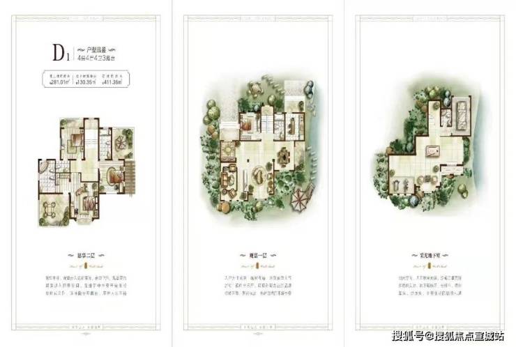 主力户型:建面约 411-611㎡纯独栋别墅,地上面积 255.36-471.22㎡。
