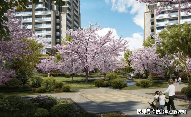 项目虽然不大,但在景观、会所上做得还是很用心的。打造了约13000㎡的新古典主义园林,中轴线上分布有礼宾大堂、中央水景、下沉式庭院,据说全冠移植了近100株日本原生樱花林。