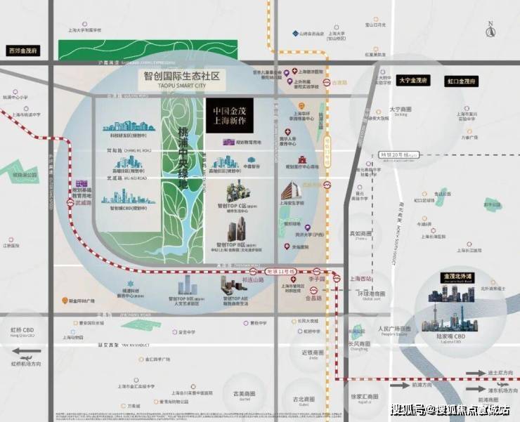 2023年,金茂回归上海市中心:以约100万方桃浦中央绿地为主轴,构建城市宏伟蓝图,打造国际公园住区(数据来源:桃浦智创城官方网站)