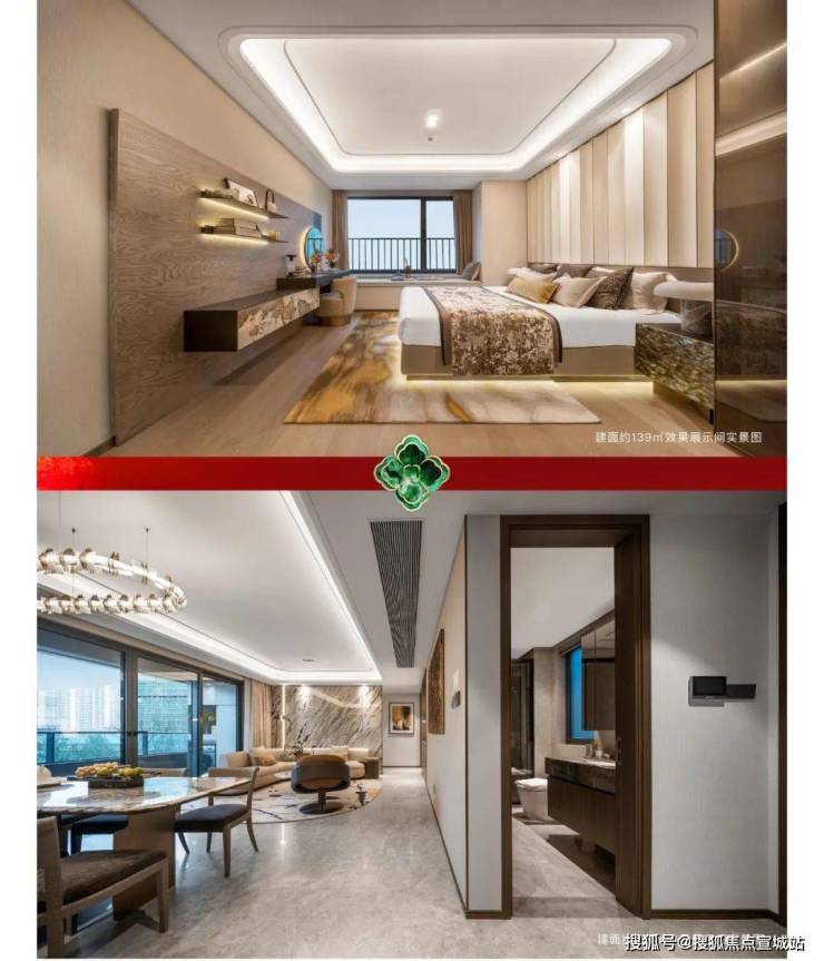 建筑设计汲取杭州传统坊巷格局,外立面采用米白色石材、木纹铝板与全景落地玻璃组合,屋顶以流线型挑檐呼应远山轮廓,窗框融入冰裂纹镂空元素,演绎“宋韵今呈”的美学语言。社区景观以“一轴三园九巷”为脉络,中央打造约1.2万平方米的“云翠谷”,布局叠瀑溪涧、竹林茶轩、月影步道等场景,还原“移步异景”的江南园林意境,绿化覆盖率达55%。同时植入全龄智慧活动区、星空露营草坪、碳中和光伏廊架,结合海绵城市技术构建雨水花园与生态湿地。户型设计强调空间流动性与自然交互,洋房主力户型为120-200平方米的三至四房,全系标配270度环幕观景窗、智能家居系统及可变式多功能间;叠院产品面积240-350平方米,创新“垂直院落”设计,实现地下泛会所、地面私家庭院与空中云景露台三重空间体验。