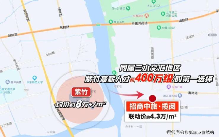 尤其是未来东川路越江隧道开通后,更是一脚油门即紫竹,房价相差一倍有余,对于紫竹人民来说,招商中旅·揽阅真的太香了。