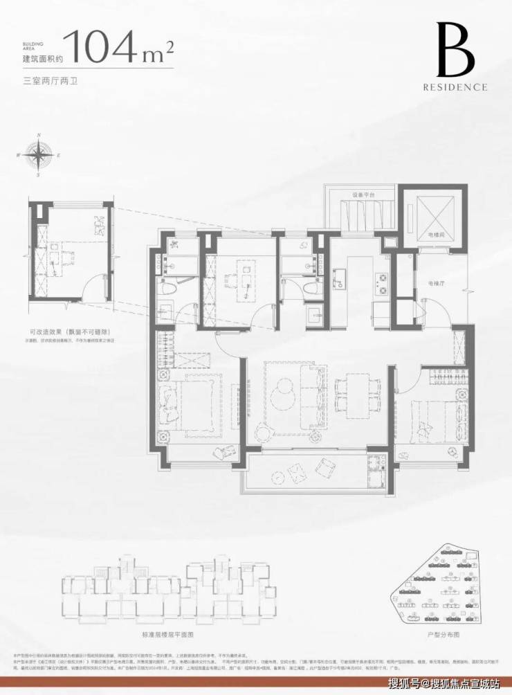 非常标准的南北通透飞机户型,外部没有连廊、内部没有过道,整个户型的空间是非常宽绰的。加上3房2卫的户型结构,这个户型能保证一家人从二人世界到三代同堂的全生命周期需求。