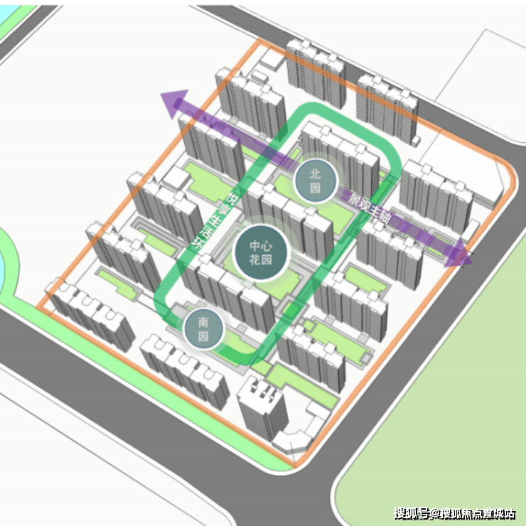 项目精心规划“一环一轴三园”,于建筑中另辟一方天地,以绿意包裹整个小区,打造绿氧环绕的公园住区.
