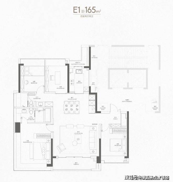 来到165㎡个户型,已经上升到上海主流的大户型改善面积段,中環置地中心·望雲售楼处电话:400/8862/334【预约☎】但看设计思路,可以看出是为满足多胎家庭成长而服务的。
