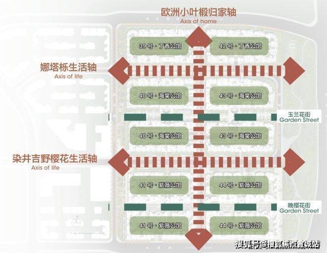 从上海百年洋房中汲取灵感,以丁香、海棠、紫薇为海派背景,“三轴、两街、十大组团”为空间结构,打造气贯中西的十大公馆式花园。移步异景里,带来环形沉浸式的度假享受。