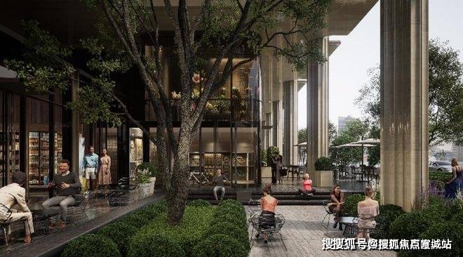 同时,澐启滨江摒弃了传统底层商业的密集布置,而选择以“非标化”的方式组织生活界面:城市转角以咖啡驿站为节点,形成街角的温度;中段以组团化的休闲商业点缀,嵌入生活的烟火气;东侧则以社区配套与社交花园收尾,延展人文关怀,使街区的气质更接近“类公园化”的生活场景,而非传统意义的消费空间。