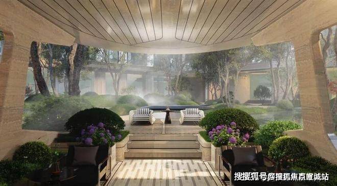 澐启滨江还打造了延展超百米的庄园景观。设计灵感源自杰弗里·巴瓦的庄园哲学,建筑单体与绿化植被交错融合,形成一系列嵌入自然的观景单元。