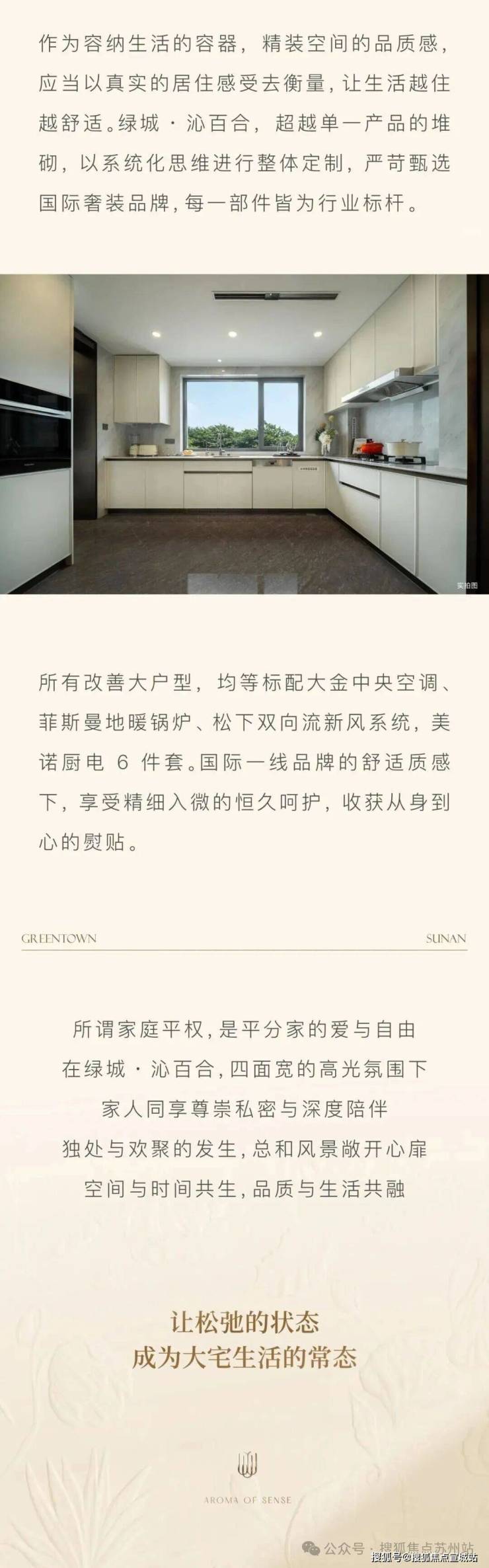 绿城·沁百合,重塑园区改善住宅新标准,提纯百合之形、百合之境、百合之韵、百合之香,从“时与间”、‘张与驰’、“家与宅”,“奢与雅”四个维度,为苏州展开沁香流芳的生活叙事。