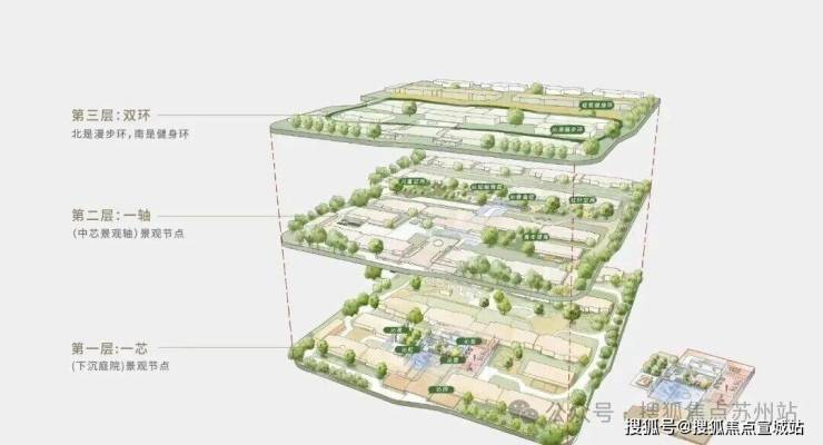 “立体景观芯”,下沉庭院复合型功能空间,非平面铺陈,目之所及皆是立体画境。