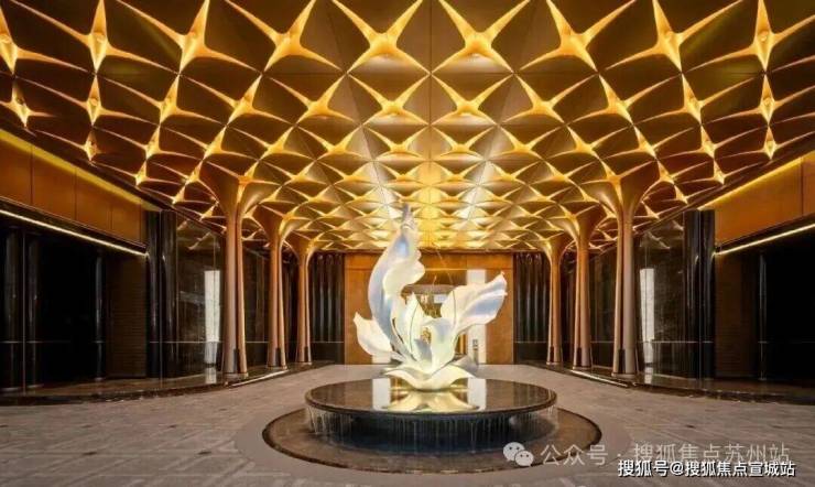 奢贵门庭,定制6瓣百合花雕塑以华贵之姿立于园中;地上归家大堂,百合花艺阵列呈现层叠绽放姿态;地下光厅,融合在地文化及国际酒店设计理念,打造专属归家尊仪。
