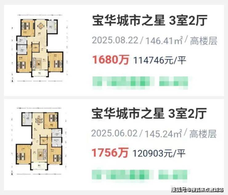 而周边的标杆次新宝华城市之星,近期146㎡3房成交总价约1700万,折合单价约11.5万/㎡。