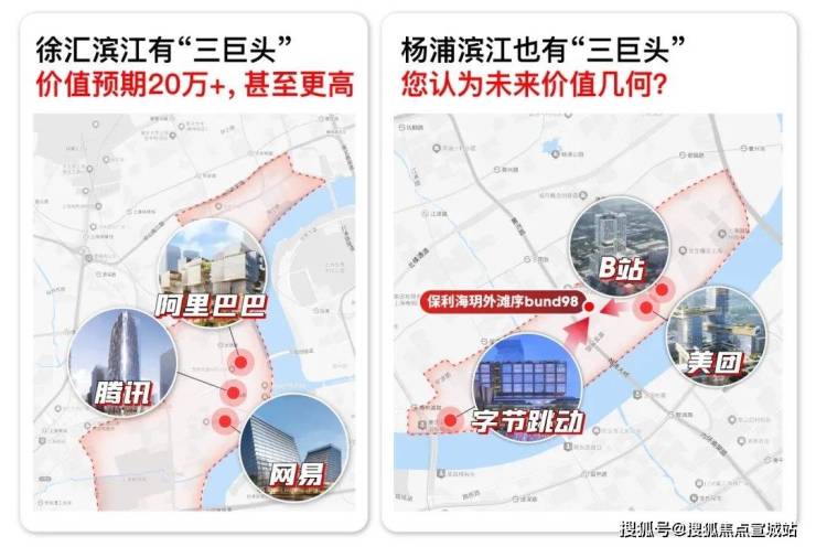 大厂改变一个板块命运的案例数不胜数,前有浦东张江,徐汇闵行的漕河泾;后有徐汇滨江,阿里、腾讯及网易,三大互联网老牌巨头齐聚徐滨,助力徐滨房价升级。