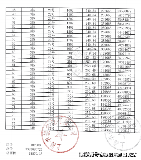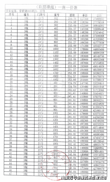 一房一价表: