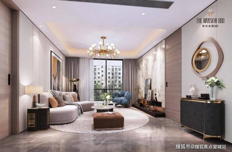 【陕西南路888】外立面,在梧桐树叶的簇拥下,白色的立面挺拔庄严,辨识度极高!内部公区,从入户大堂,到电梯间再到售楼处,色彩明亮,大气恢弘,品质感十足的同时,充分彰显业主的品位!
