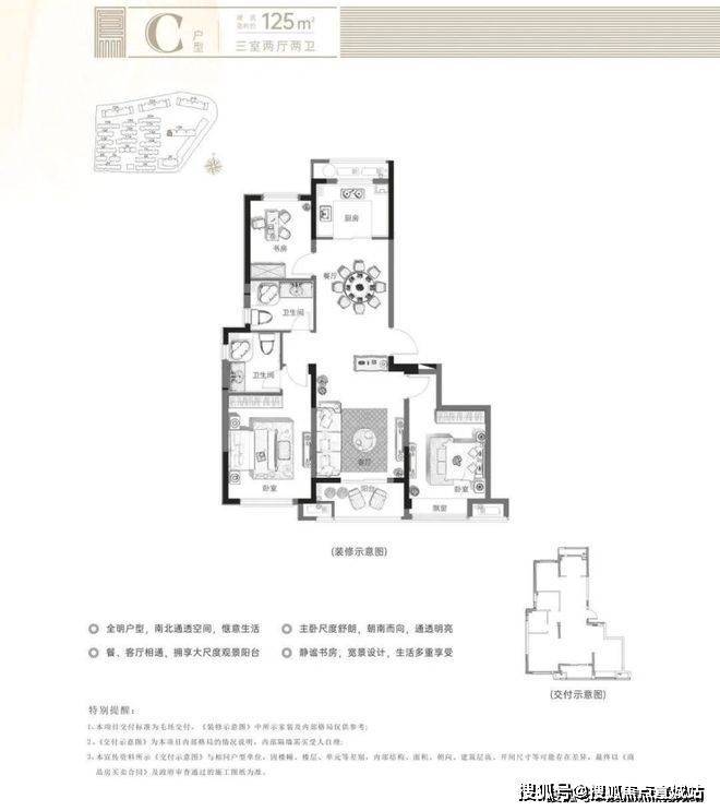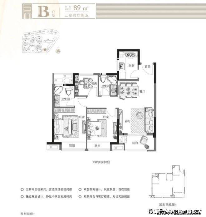 高层户型:有 89㎡、116㎡、125㎡的三房两厅两卫户型。