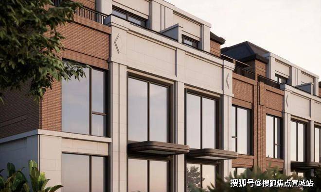 立面沿袭了嘉佩乐酒店的红砖元素,腰线运用深古铜色铝板,提取山墙、几何装饰等里弄建筑符号,以独具海派文化底蕴的红砖造艺,延续墅居经典三段式立面结构.