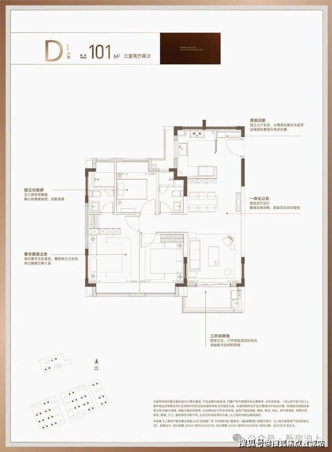 就拿项目爆款101户型来说,凭借约81%超高得房率,直接跳出了常规百平米户型的“2+1”局限,打造出真正的改善型正三房!