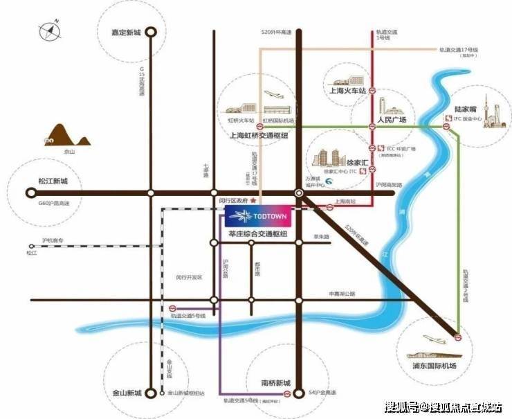 交通配套:地铁1号线莘庄站上盖、5号线、金山支线、20多条公交线路、机场9号线;自驾:沪闵高架快速到达徐家汇商圈,并可转中环、内环到达城市的各个中心板块;S20(外环)、G60(沪昆)、S4(沪金)等高速路,快速抵达虹桥机场、浦东机场、实现奉贤、金山、松江半小时使用圈,和长三角一小时使用圈。