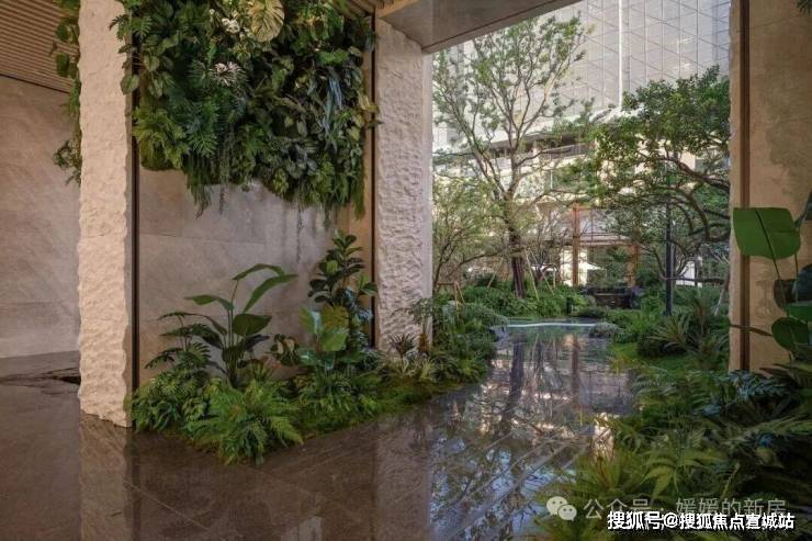 藤蔓沿墙垂落,水流自然流入,花草在架空层间摇曳生姿,使这一开放场域成为生机盎然的灵动空间。