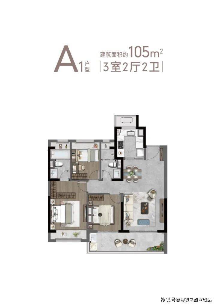 A1户型105㎡3-2-2