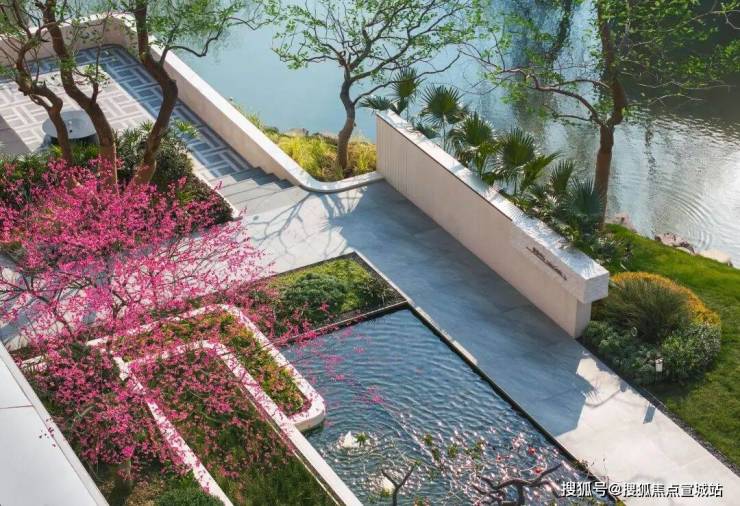 继续看下去,你会发现望宸映澜还花了极高的代价在西侧沿河区构建了一个充满野奢自然的滨水花园,与社区活动中心内外嵌套,河道、叠水景观、精致小景、阳光草坪和精心挑选的树种和谐共生。