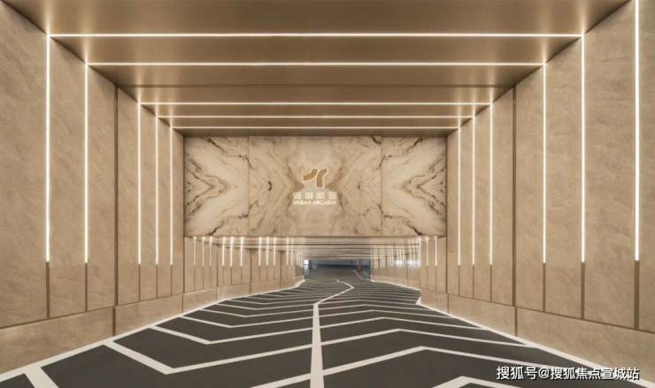 视线再来到车行动线,望宸映澜板块独创的追光地库便映入眼帘,入口两侧及顶部采用铝板、瓷砖搭配竖状灯带,顶部还雕刻了项目logo的超大花纹岩板,随着车辆驶入灯带便同步逐级点亮,每一次归家都成了一场极致的礼序体验。