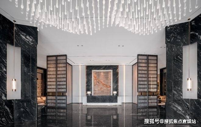 • 立面革新:单樘价值30万元电动提升全景门,意大利鱼肚金立柱与香格里拉同款黑荒料奢石铺陈;