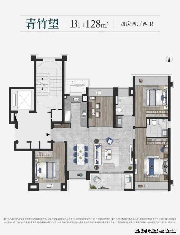 如果家庭有二孩或者三代同堂需要的,那建面约150㎡的四房大平层一定要优先加入您的“购物车”,标准的“大面宽短进深”的黄金户型格局,直接让人竖起大拇指: