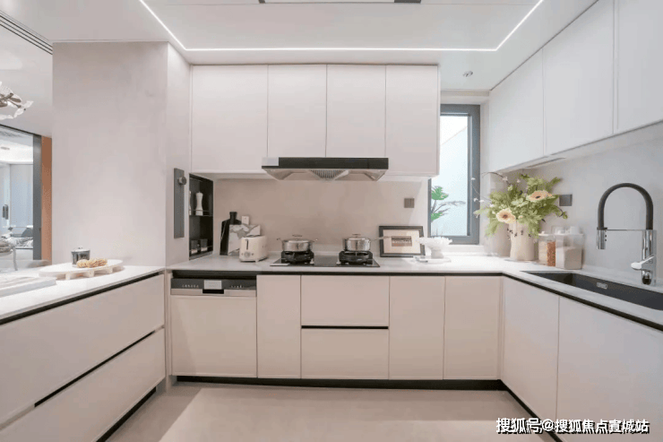 前所未及的超大尺度,结合曲面的艺术设计,使得整个室内的居住品质得到了质的飞跃!功能区的设计也充满了人本的细节设计和思考,阔朗的超大厨房设计,定制岛台,升降式插座,实现大家族式的社交式烹饪。