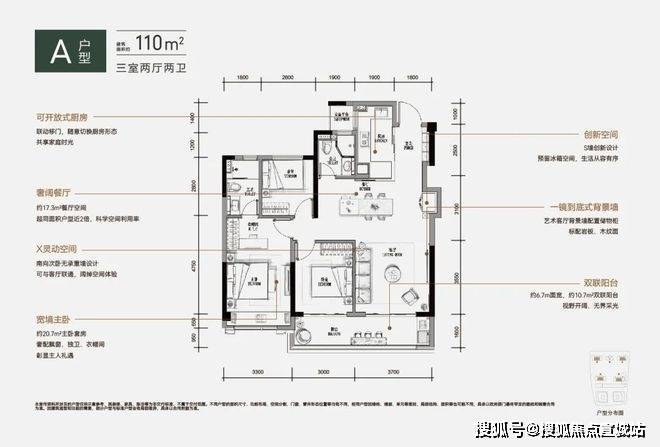 ①约42㎡尺度双厅,约13.9米南向敞阔开间