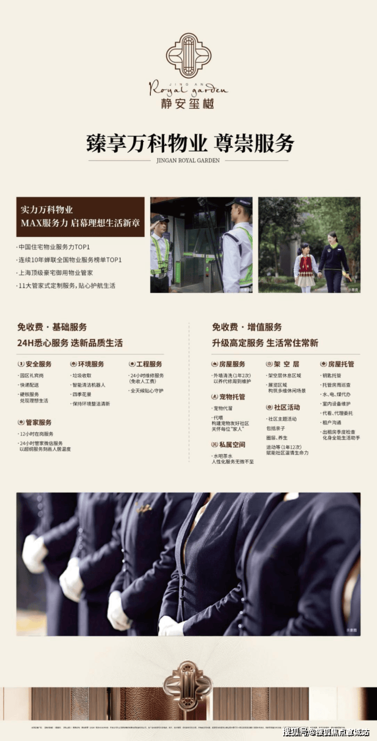 项目选用万科物业,定制社区出入、环境保洁、入户维修、双重管家、业主定制增值等 11 大服务内容。万科物业以其专业、贴心的服务,为业主营造一个温馨、舒适、安全的居住环境,让您的生活更加安心、舒心。