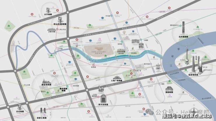 商业资源:近在咫尺的市区成熟生活配套,约百万方摩登商业环伺。大悦城、人民广场、南京东路商圈均在直线距离一公里范围内。