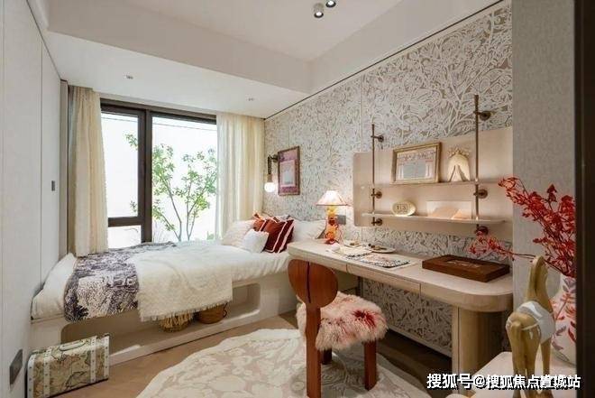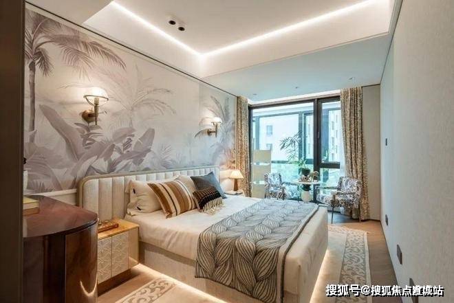 豪华的套房设计,北侧卫浴飘窗+南向床边双飘窗的设计,更是把这个空间的视野和收纳空间延展开来,尺度感真的很惊人。