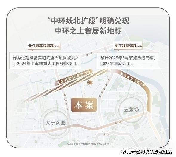 中环线北扩段明确兑现,军工路快速路25年开工,长江西路快速路列入上海市重大工程清单预备项目,快速链通城心,随着中环线北扩段的政策明确,淞南将正式进入中环时间。未来经逸仙高架,进入南北高架、内环高架、中环高架,可快速链通南北上海;多维立体路网全面升级,未来区域价值再攀新高。