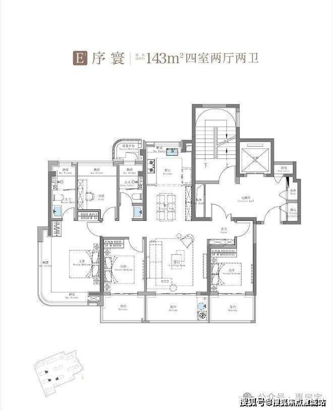 主力户型:主力户型为建面约 100㎡三房和 143㎡四房,且全系采用三阳台设计,得房率最高超 92%。