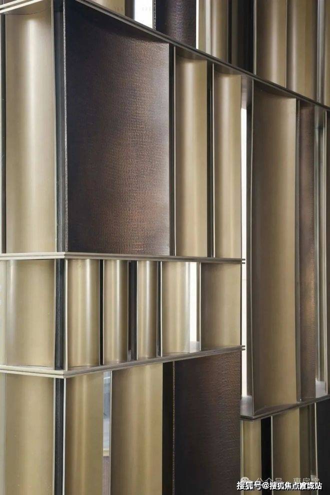 一块游廊上的锤纹铜板深深打动了我,锤纹最早源于金银铜器的加工,“手落为一锤 四锤为一纹”,这块铜板需要通过匠人千百次的手工捶打才能形成阡陌纵横的纹路变化。这样的手工慢艺,在招商序的会所之中不止一处,在如今机械化模板化的时代之下,这份用心实为珍贵。