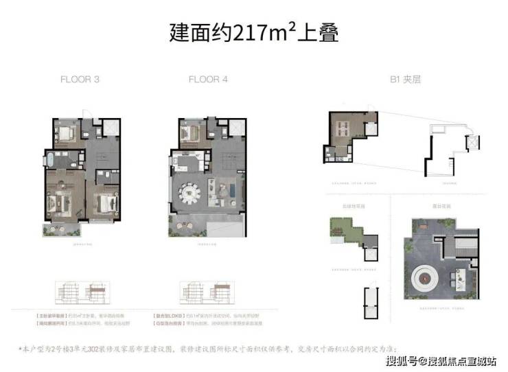 在所有叠墅户型中,下叠往往是更具“墅感”的,我们以主推的建面约200㎡下叠产品为例,来解析一下这个产品: