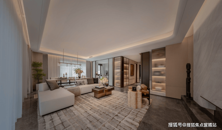 采光与湿度的精准把控,真正实现了地下空间与正常室内空间的平权!大大提升了产品地下室的功能可塑性和生活想象空间!反季节体验:衡温系统实现冬季18-22℃、夏季24-28℃恒温室温,搭配舒静降噪,业主实测“冬季无需地暖,夏季不用空调”,相比传统别墅空调节能40%以上!最后,还有一点,整个样板间运营了大量的奢石、石材、岩板等昂贵用料。