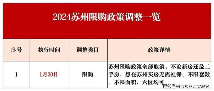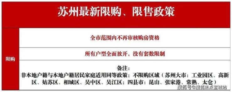 限购、限售政策今年1月30日开局,超级史诗级利好落地。苏州全面放开限购,全市范围内不再审核购房资格