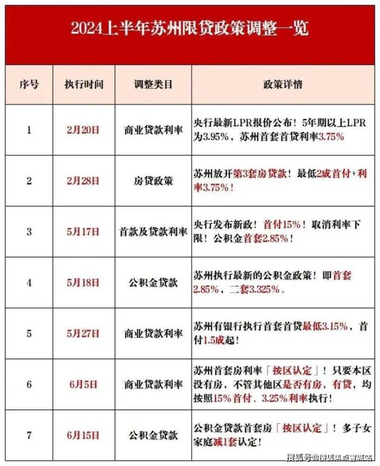 限贷政策,苏州2024上半年对于限贷政策的调整非常多,全年共出台足足有7条,主要集中在公积金贷款及商业贷款两方面,增加公积金贷款额度,降低首付、降低利率,全面降低购房门槛