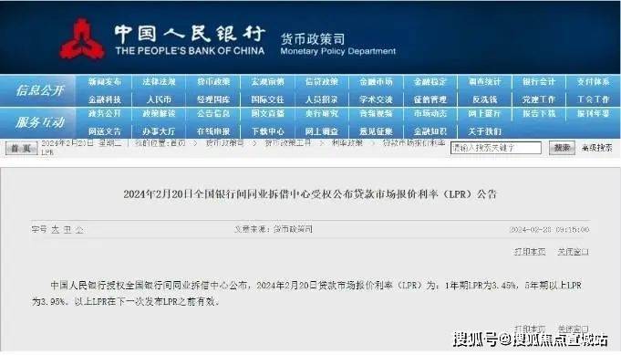 1、LPR下调!2024年2月20日,央行最新LPR报价公布!5年期以上LPR为3.95%。