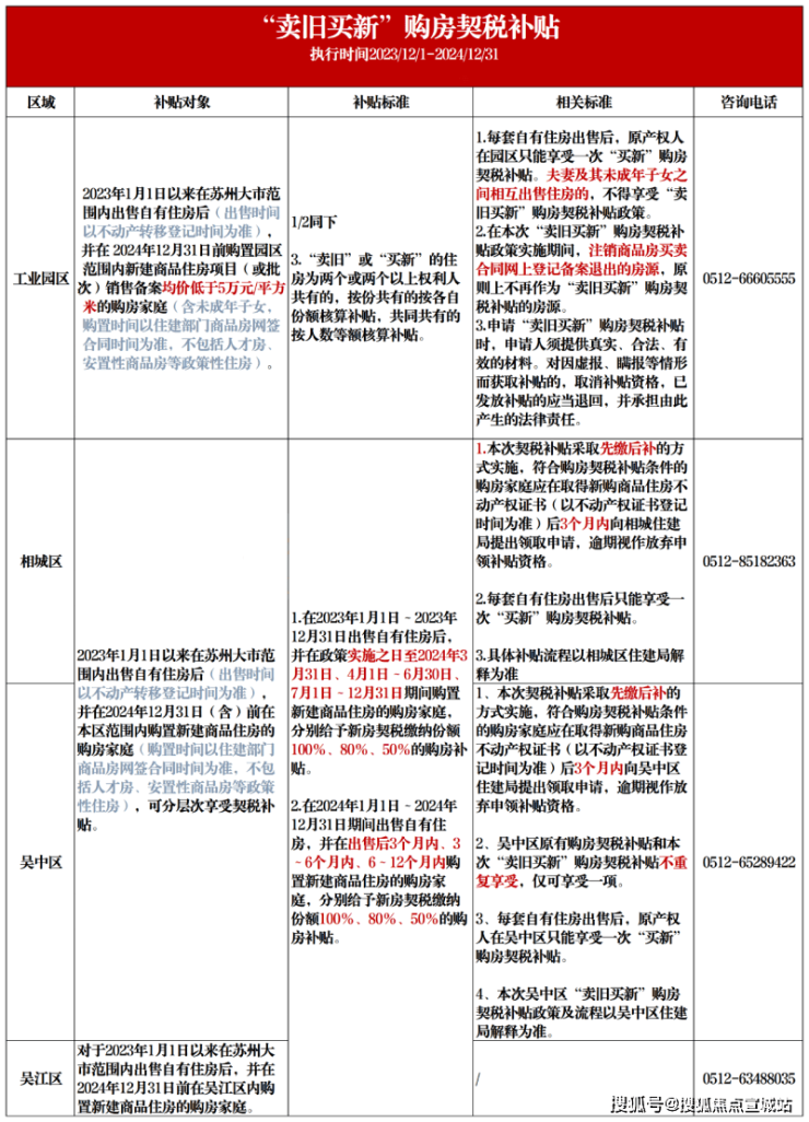 补贴政策今年上半年,继相城区、吴中区、吴江区、工业园区之后,姑苏区出台补贴类政策,真金白银的为购房者节省购房成本。延伸阅读:姑苏区发布“卖旧买新”契税补贴细则