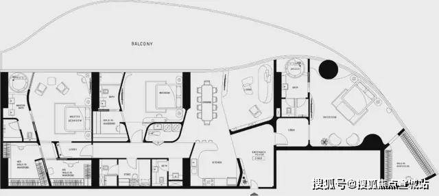 建筑轮廓从法国里维埃拉的海岸线与迪拜沙丘中汲取灵感,外观动感流畅,阳台如丝带般环绕楼体,呼应了布加迪跑车特有的流线造型。