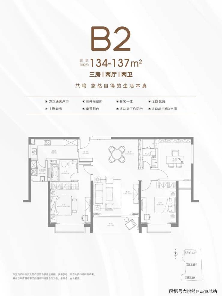 建面约134-137㎡B2户型: