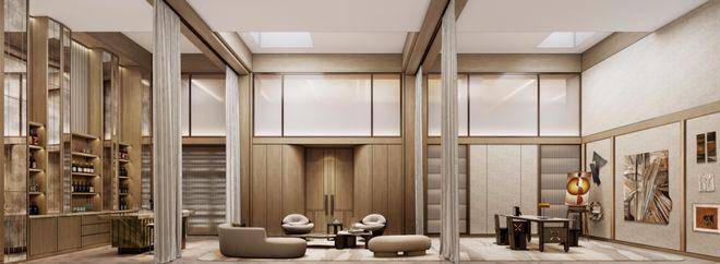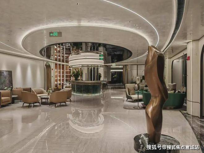 空间匠筑海派精奢美学,萃取嘉佩乐酒店式归家礼序,以低饱和高级灰基调融合室内外无界场景,信达信安里售楼处电话:400--8862-334上海置业专线轻松住好房全公区奢石铺装 (普拉达绿、莫奈灰等) 与地下三层大堂珍稀石材组合,于细节处雕琢低调奢华的艺术归家场域。