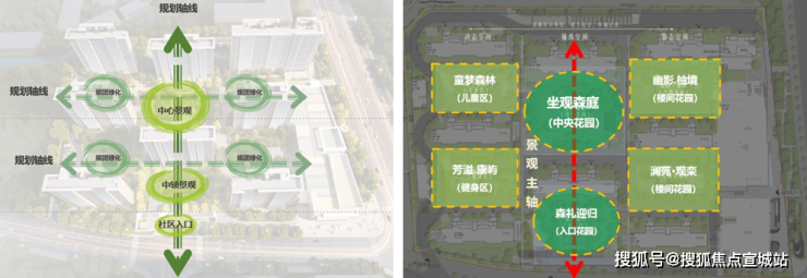 整体理念: 打造有活力、有仪式、有秩序、动静分区的精品生态社区。采取经典的中轴对称设计手法,尊贵礼序的三进式院落归家空间,结合中心绿化及景观带打造出独特的仪式感和尊崇感。