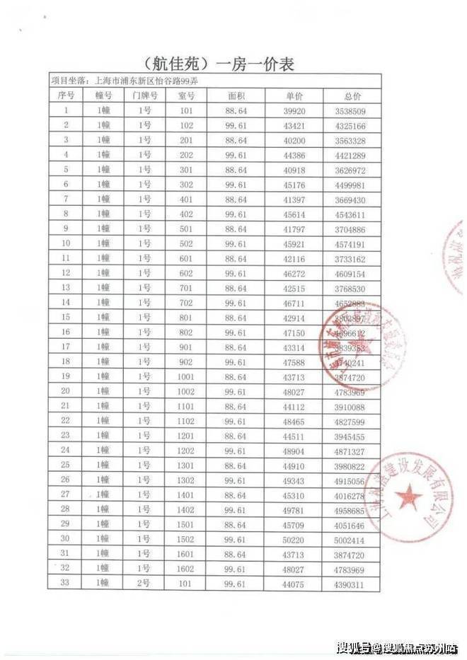 项目一房一价表